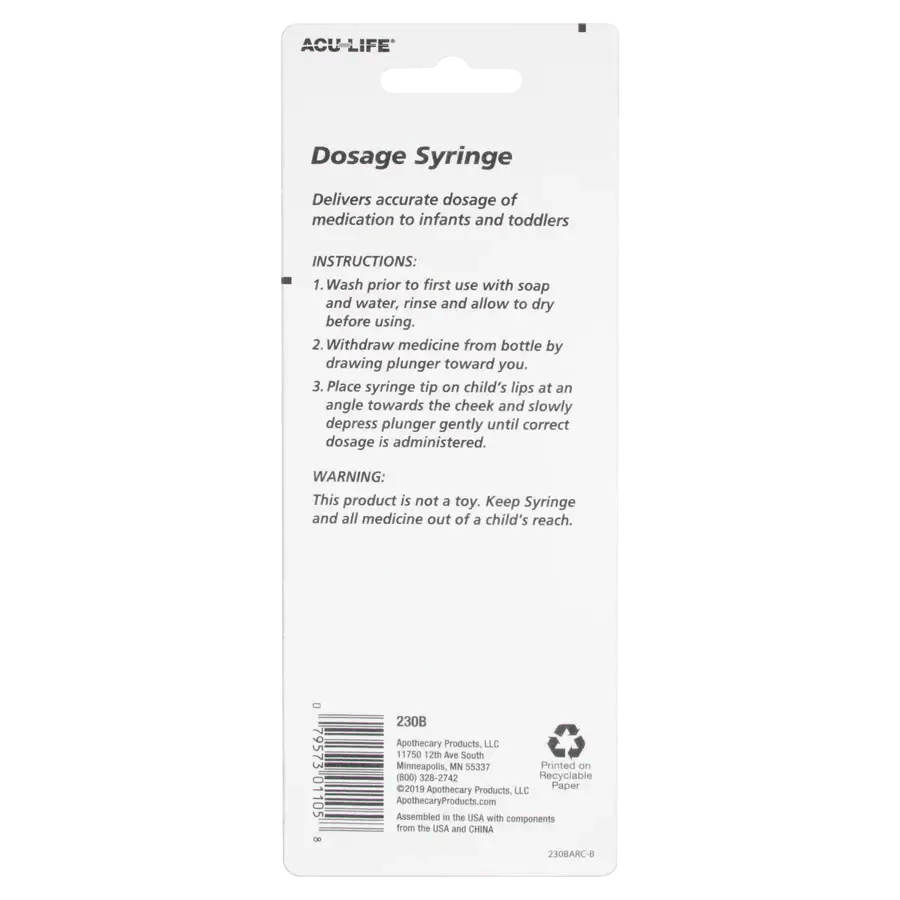 If you struggle with administering precise doses of medicine to your child or patient, the Acu-Life Dosage Syringe makes a great solution. This dosage syringe guarantees precise dosing, comfortable handling, and peace of mind for parents and healthcare providers.