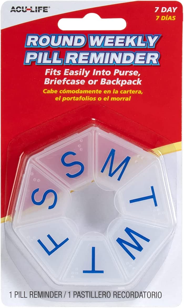 Acu-Life Weekly Round Pill Box – Helps Track Your Daily Medication