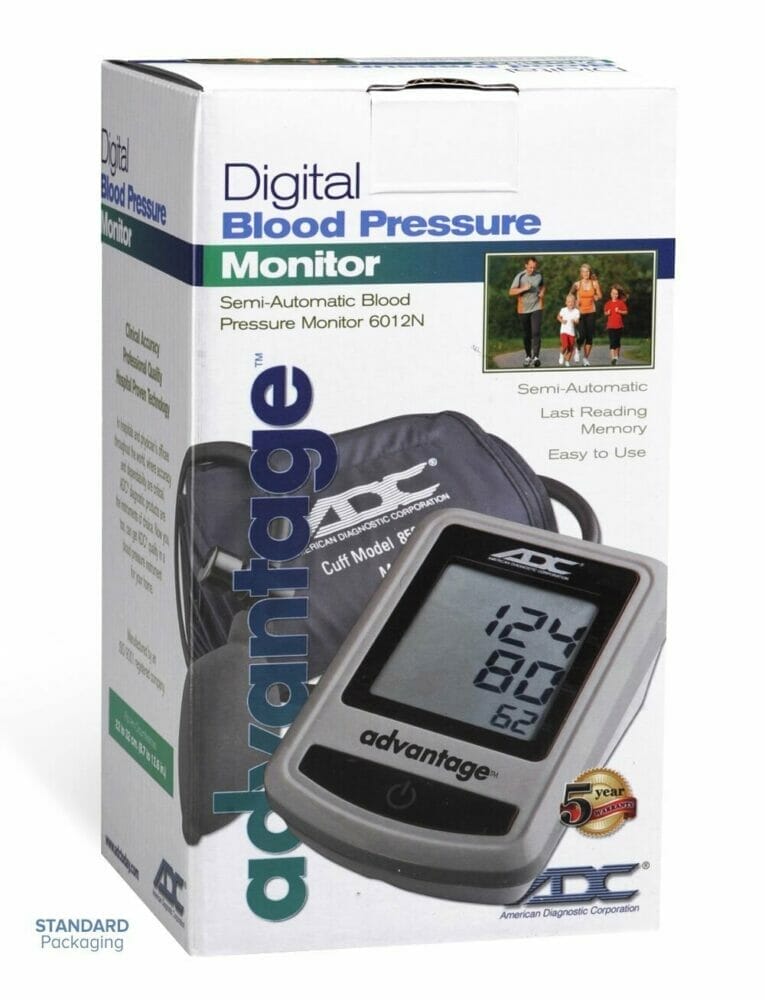 The ADC Advantage 6012N Semi-Automatic Digital Blood Pressure Monitor provides simple and easy-to-understand reading of the patient’s diastolic pressure, systolic pressure, and pulse.