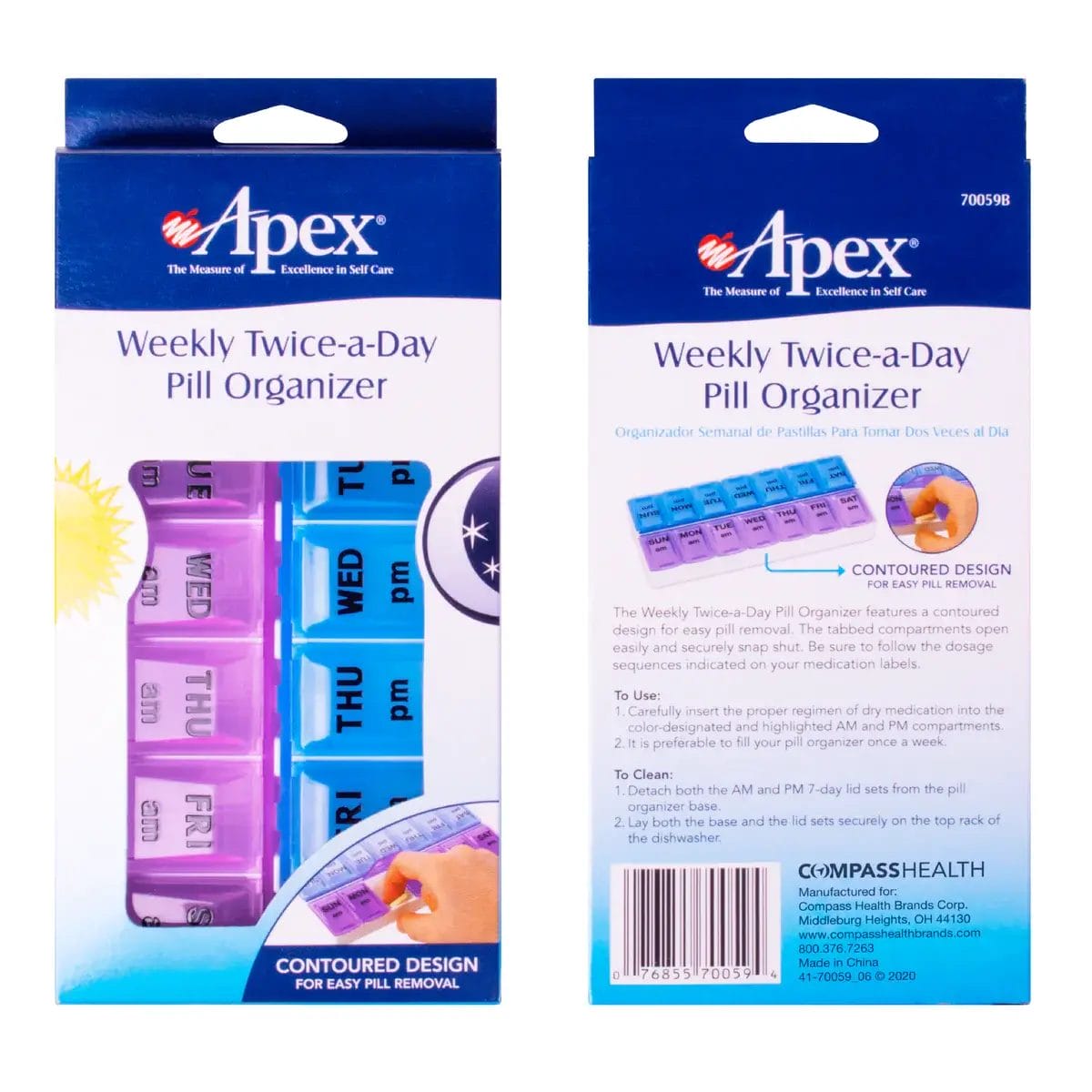 The Apex Weekly Twice-A-Day Pill Organizer is what you need to keep an organized schedule for taking your medicines. This pill organizer is designed to keep medications fresh and ready to use at the time you need to take them.