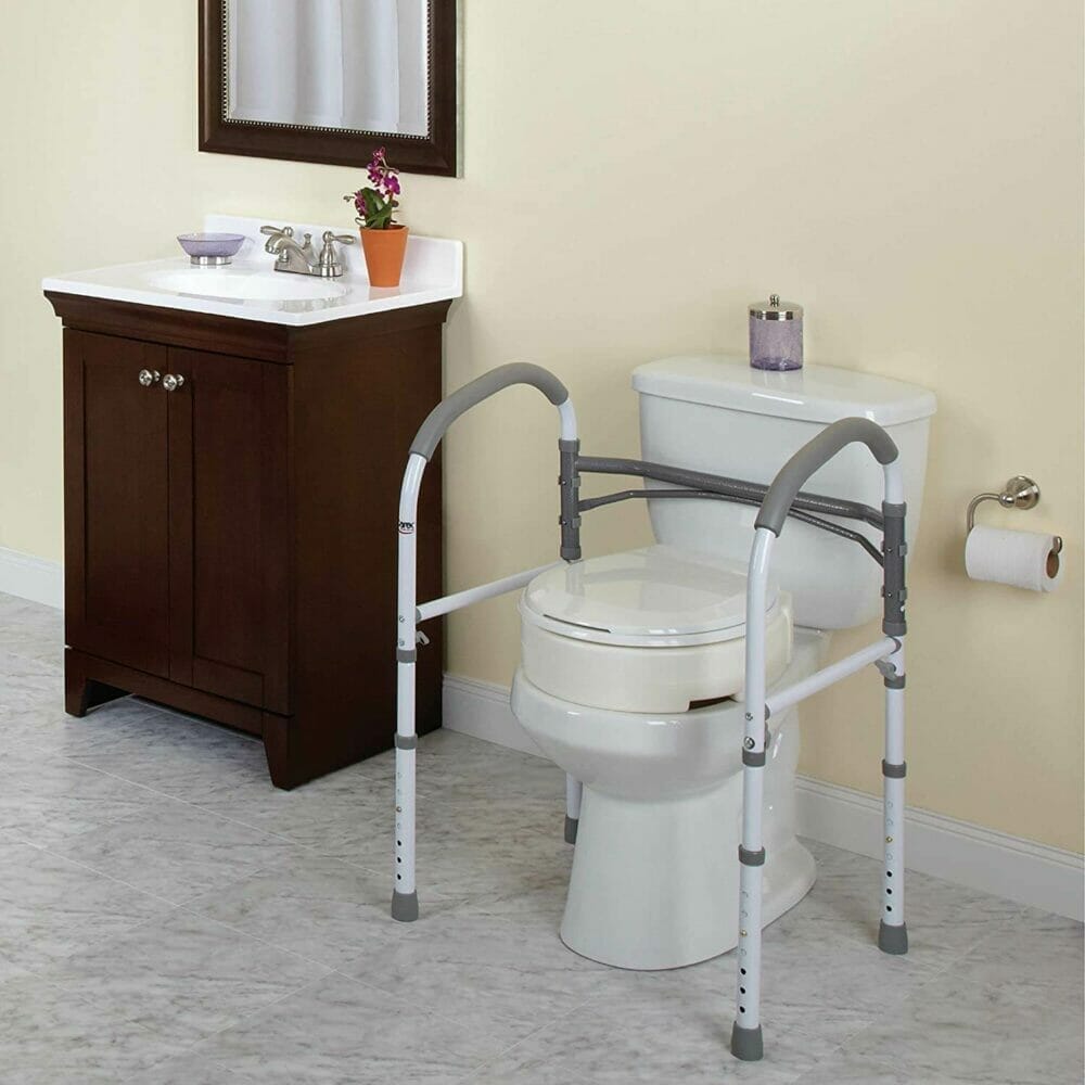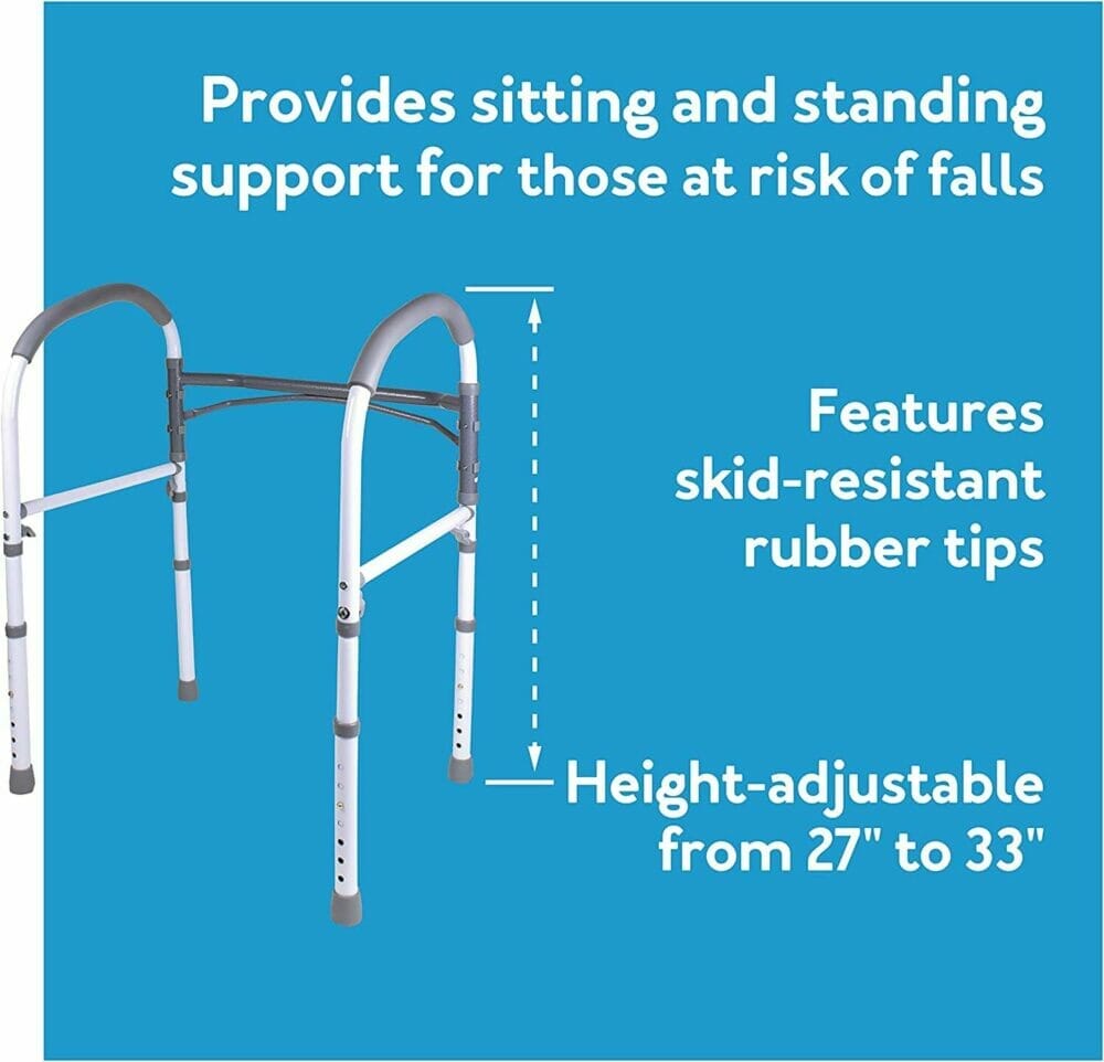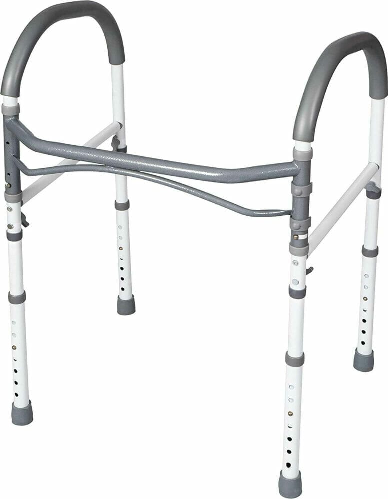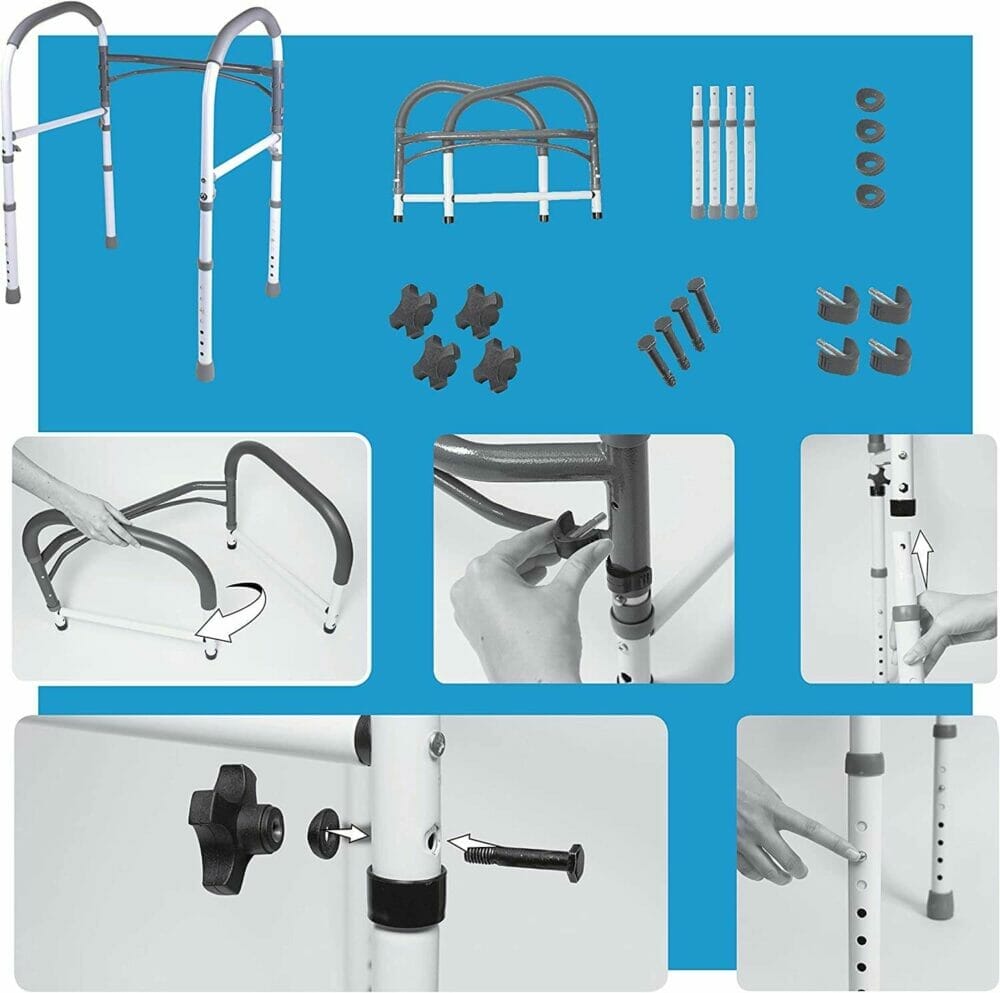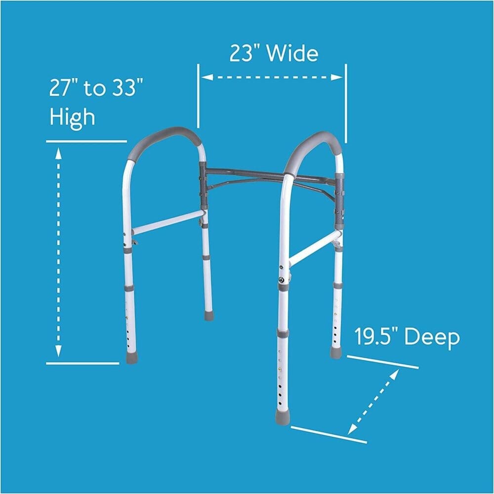 This easy to assembly and multi-use bathroom safety rail is a must for you if are having a hard time using the bathroom or going around the house because of injury, weak mobility, or other medical condition.