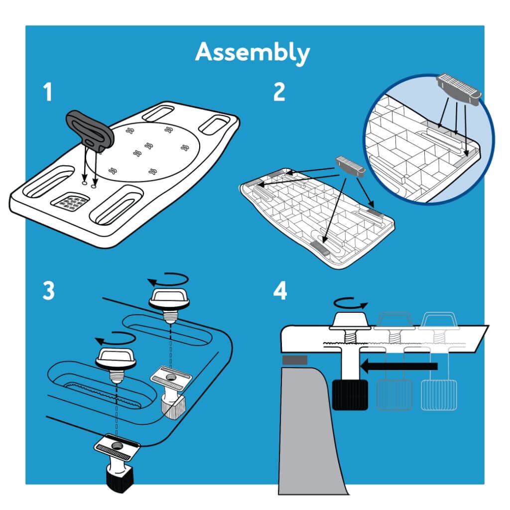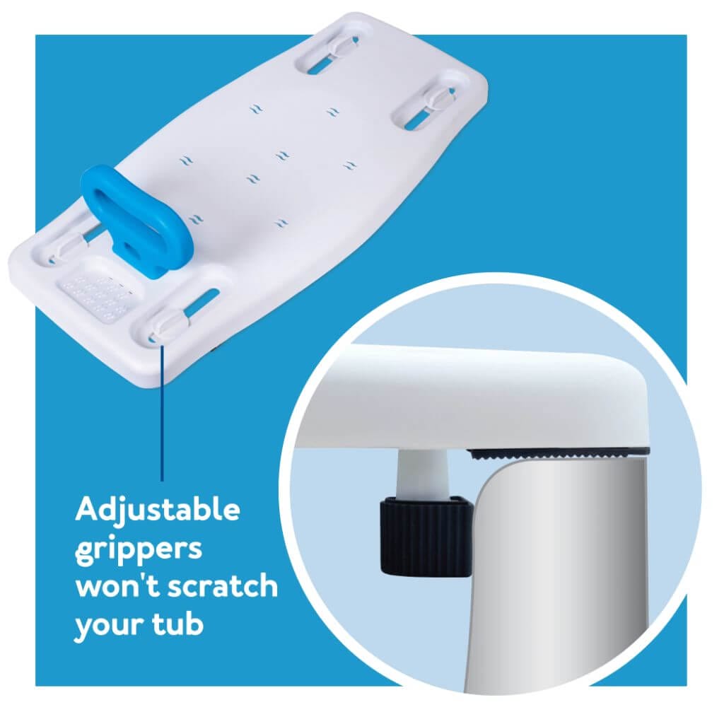 Place the Carex Portable Shower Bench with a Safe Grip on top of your bathtub. To ensure security, use the adjustable grippers with rubber stops to lock the shower bench in place.