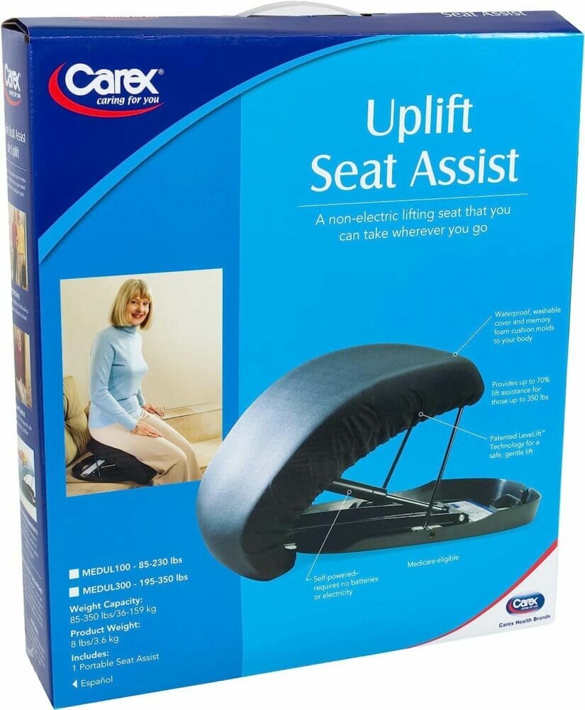 The Carex Uplift Seat Assist can be used as an alternative to lifting chairs and power lift recliners which are usually expensive.