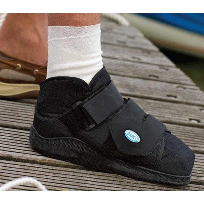 The DARCO APB™ All Purpose Boot is known for its unparalleled versatility. It can accommodate bulky bandages and casts and its square toe design provides maximum protection to toes against bumps. It also has an ankle strap which is a huge help in positioning the foot firmly in the shoe, eliminating friction and preventing the heel from slipping off.