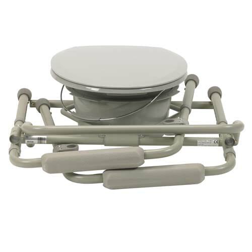 Comes complete with a 7.5 Qt. commode bucket with a carrying handle, cover, and splash shield.