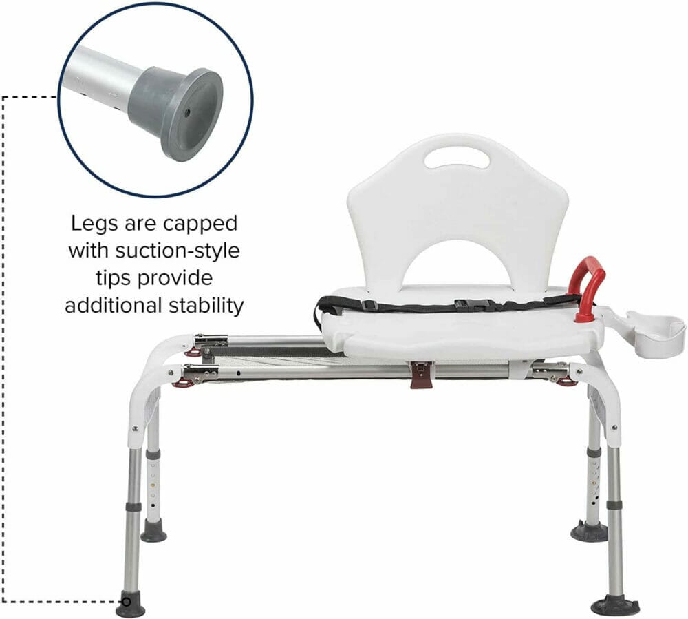 This innovative transfer bench is designed with a seat capable of sliding left and right along the frame. This design makes getting in and out of the tub much easier and accident-free. This is not only helpful for the users or patients themselves, but it also helps their caregivers as lesser strength and effort are needed to transfer the patient.