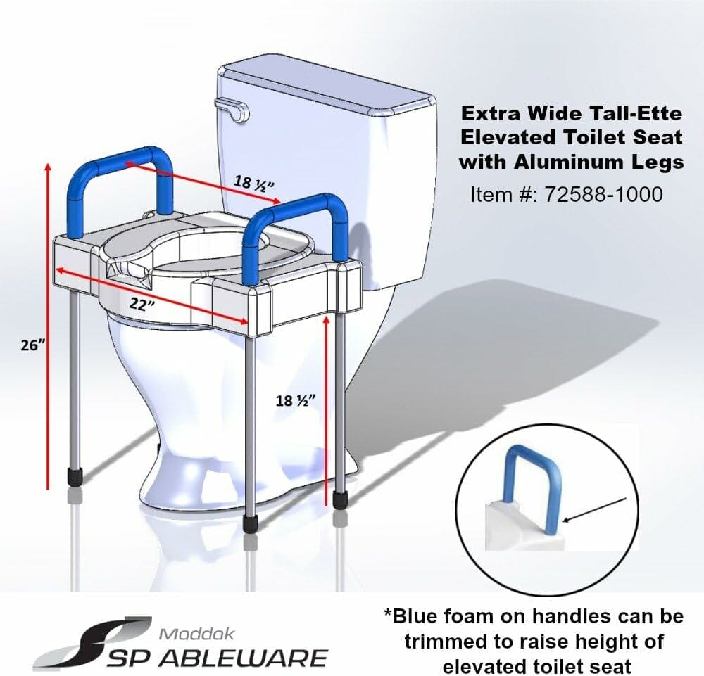 The Maddak Extra Wide Tall-Ette® 4″ Elevated Toilet Seat is a bathroom accessory designed to raise the height of the standard toilet bowl. It is primarily used to improve accessibility and comfort for individuals with mobility issues. This seat is also a practical solution to address the difficulties that many people face when using a traditional toilet, particularly the strain and discomfort associated with sitting down and standing up.