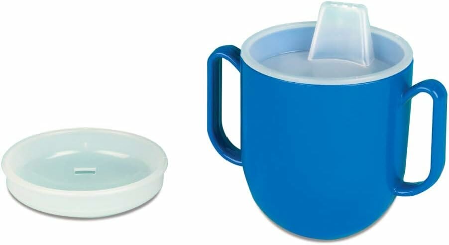 Maddak No-Tip Weighted Base Cup (6.5 Oz) – Two-Handled Cup, Two Lids, Spill Proof Design, Dishwasher Safe