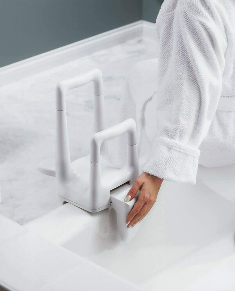 The Moen Home Care Locking Dual Tub Grip is an excellent device that can ensure your safety and flexibility when going in and out of the tub.