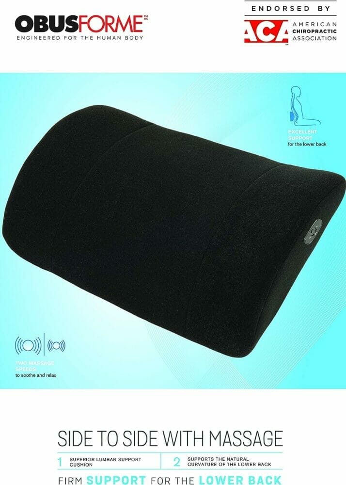 ObusForme Side-to-Side Lumbar Cushion – Two Massage Speeds, Dual-Length Straps, Fits Most Chairs