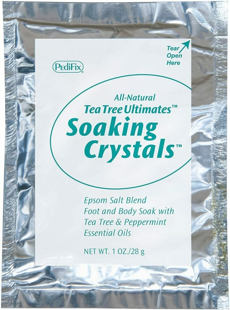 If you are looking for a foot bath product to relieve aches, pains, itching, and other issues on your foot, the PediFix Tea Tree Ultimates Soaking Crystals is a perfect choice. The product is an exclusive blend of natural therapeutic ingredients – namely tea tree, peppermint essential oil, Epsom and sea salt.