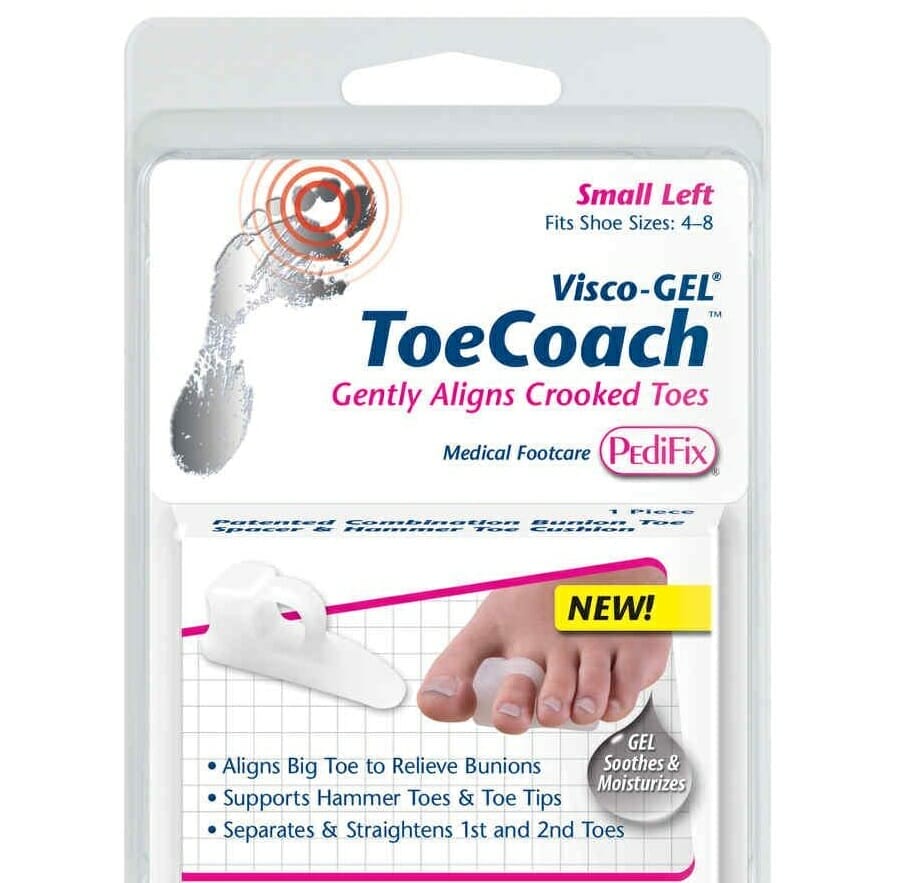 The PediFix Visco-GEL ToeCoach is a medical-grade toe support product that gently separates and aligns crooked and overlapping toes that rub. This high-quality product is not only intended for bunion relief and alignment, but it also helps relieve multiple types of toe conditions that cause pain and discomfort.
