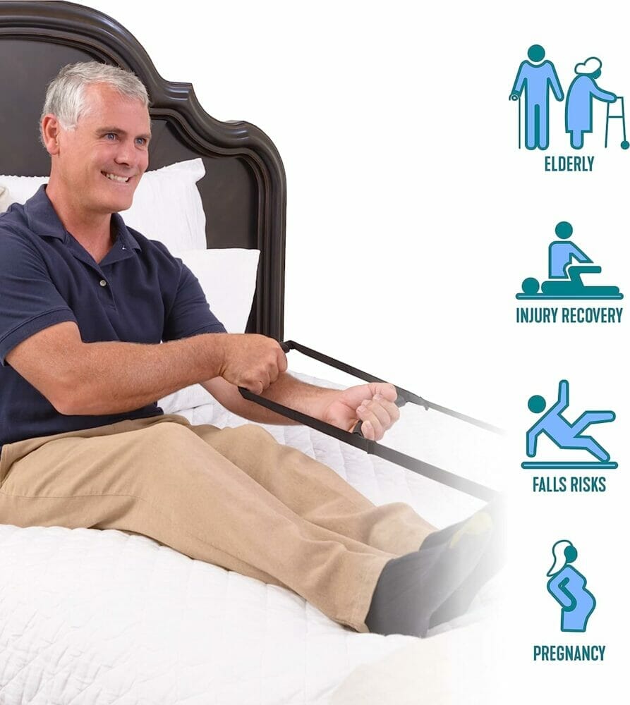 Simply reach out and grab the BedCaddie’s handle for support or leverage when sitting up or getting out of bed.
