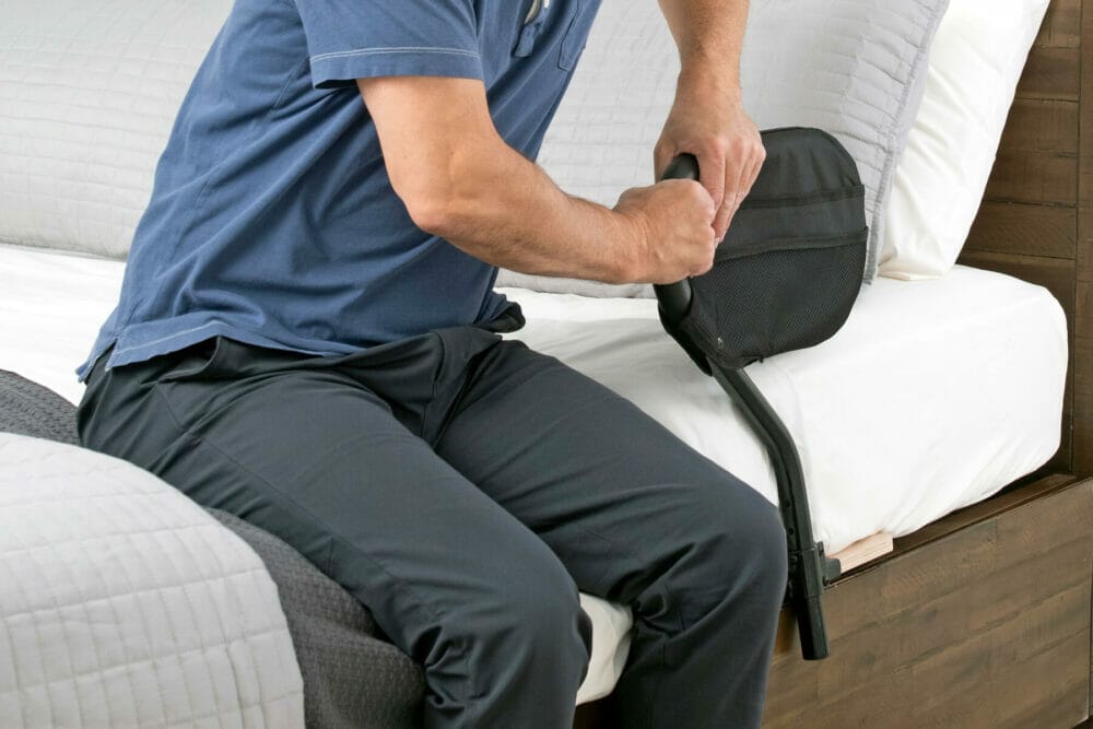 Additionally, the organizer pouch of the Stander BedCane with Organizer Pouch is designed to keep essential items within arm’s reach. You can store items such as remote controls, smartphones, books, medications, glasses, or other personal items conveniently in the pouch. It eliminates the need to reach over or get out of bed to access these items.
